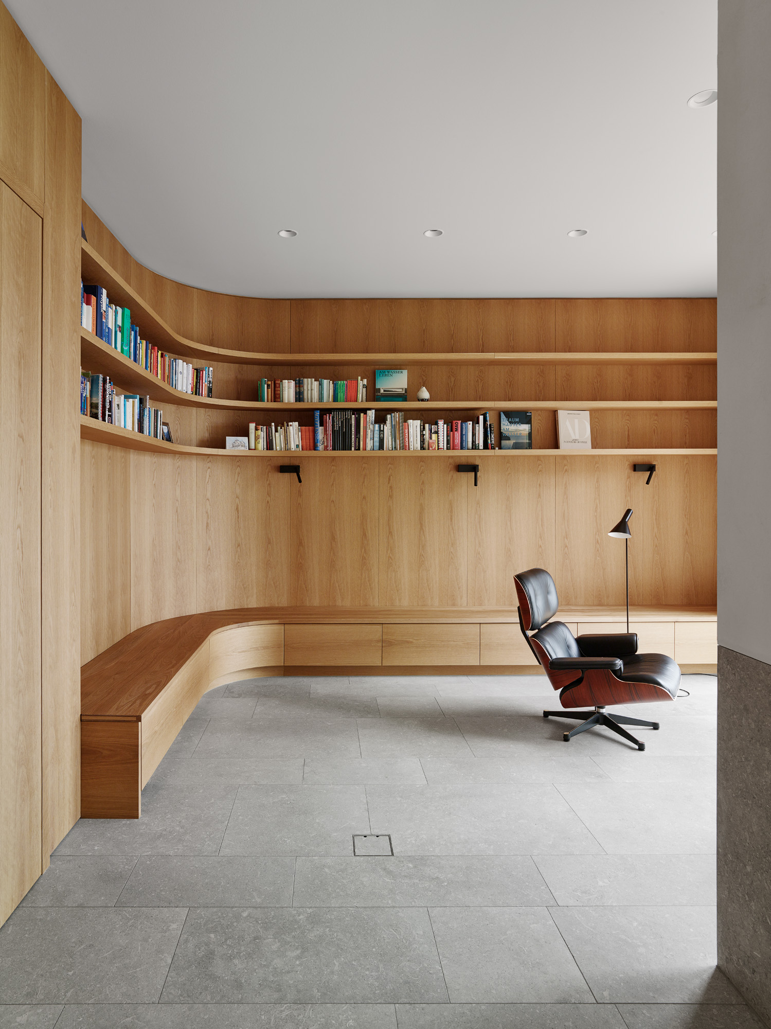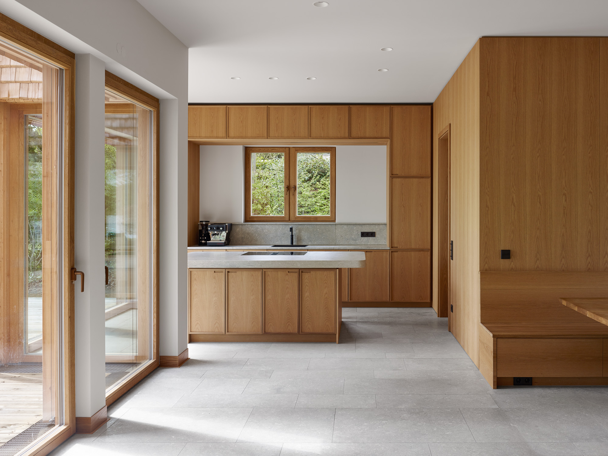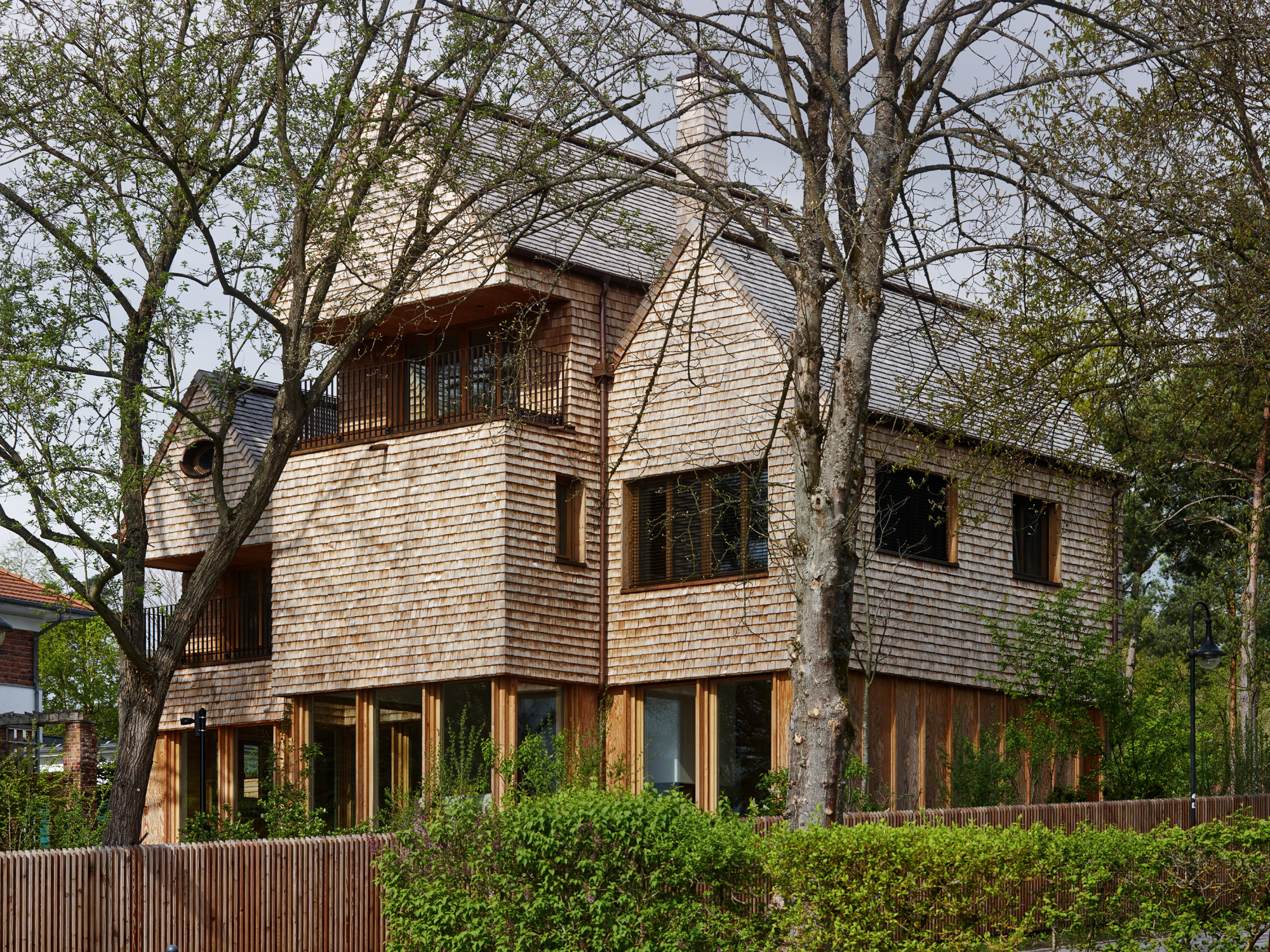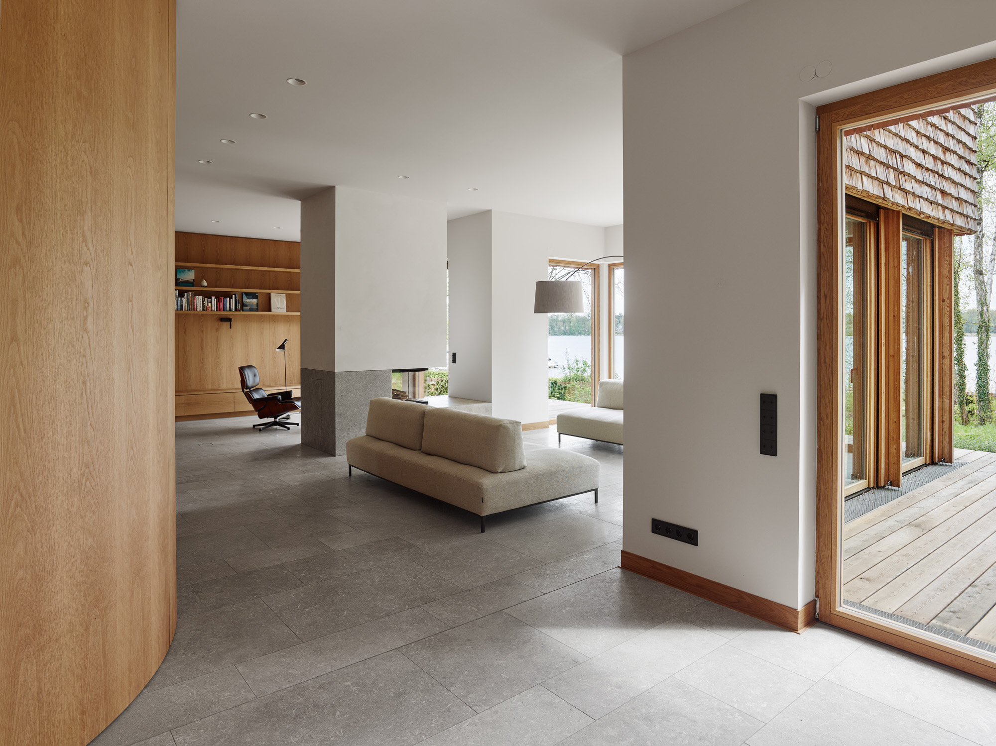 Selten hat man im Leben eines Architekten die Möglichkeit ein Haus zu bauen, bei dem die Lage, die Vorstellung des Architekten, die gewählten Materialien und der Geschmack der Bauherrschaft, einer jungen Familie mit zwei kleinen Kindern, in perfektem Einklang stehen. Der Baukörper liegt am Ufer des Scharmützelsees in Bad Saarow und besteht aus vier leicht verschobenen Satteldachhäusern, die an die Fischerhäuser am See erinnern.